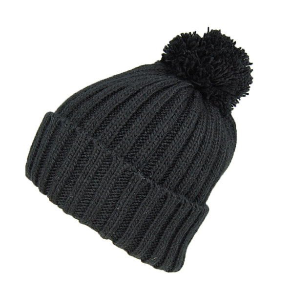 ポンポンニットワッチ ボンボン付きニット帽 黒