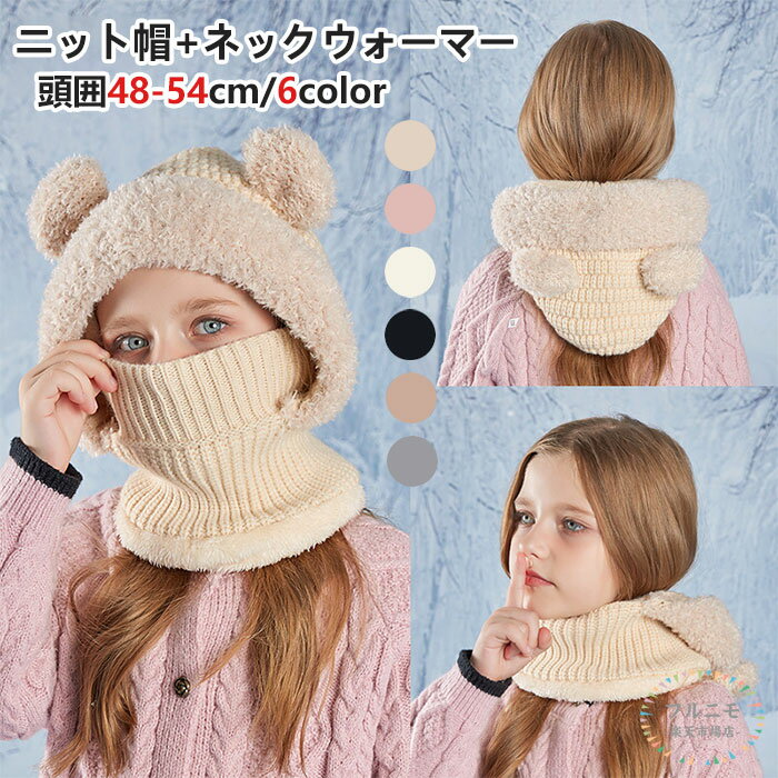 ニット帽 ネックウォーマー キッズ 秋 冬 一体型 帽子 ニット マフラー スヌード スキー 防寒 ・・・
