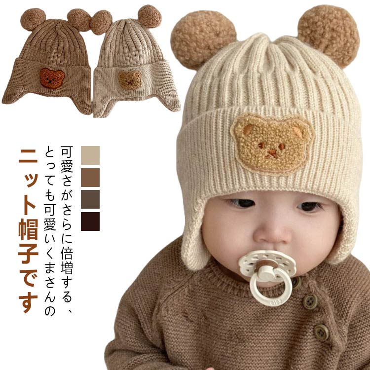 ベビー 赤ちゃん くま耳 防寒帽子 ニット帽 ニットキャップ 秋 帽子 耳保護 耳付き 防寒 寒さ対・・・