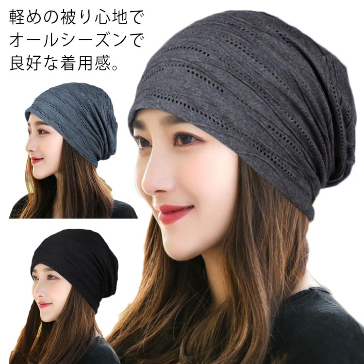 ビーニー 薄手 サマーニット帽 ニット帽 春夏用 レディース 蒸れにくい ゆったり 黒 グレー ゆっ・・・