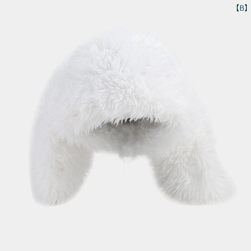 帽子 レディース 秋冬 防寒 かわいい ウサギ耳付き 雷鋒帽 ニット帽 ビーニー ブラック ホワイト・・・