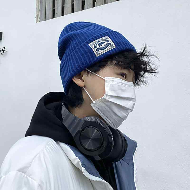 ニット帽 秋冬 男性用 防寒 ビーニー サイクル ネックウォーマー 一体型 無地 孔雀ブルー ブルー・・・