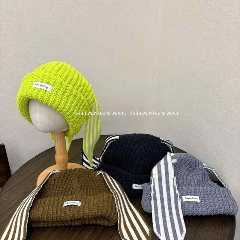 ニット帽 レディース メンズ 長耳 ストライプ 秋冬 防寒 かわいい 暖かい 学生 ビーニー グレー・・・