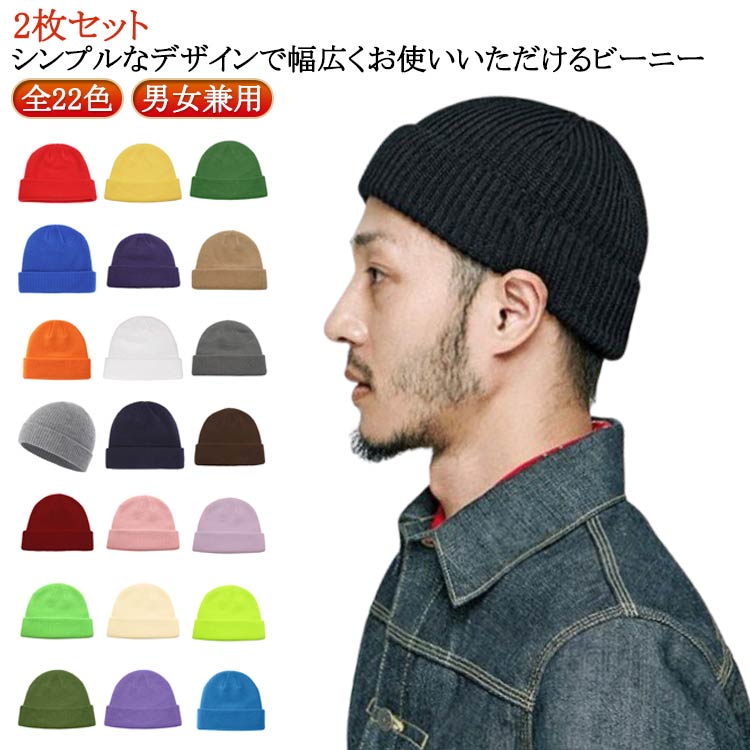 ニットキャップ 浅い ニットキャップ ショート ショートワッチ 全22色 あったか 2枚セット ワッ・・・