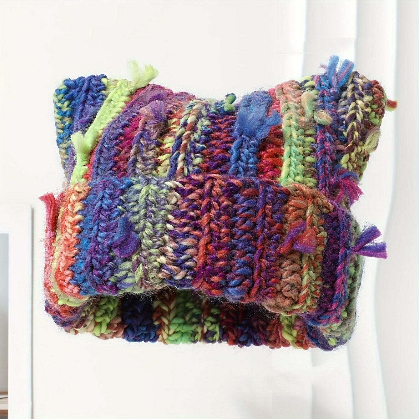 手編み風 ボヘミアンストリート ビーニー帽 ニットキャップ レディース 冬 帽子 マルチカラーグラデ・・・