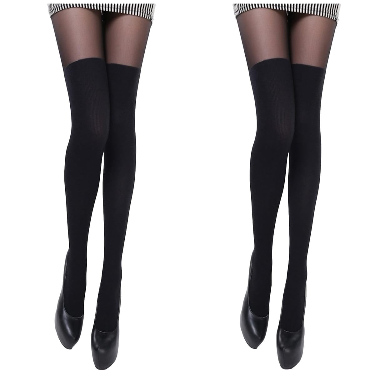 [ReiLuana] フェイク ソックス ニーハイ ストッキング タイツ 美 脚 切り替え 生地 効・・・