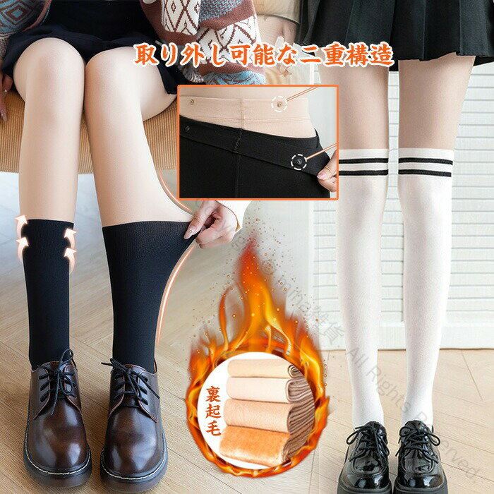 裏起毛フェイクストッキング 3in1一体式 ハイソックス ニーハイホワイト オーバーニーレングス 着・・・
