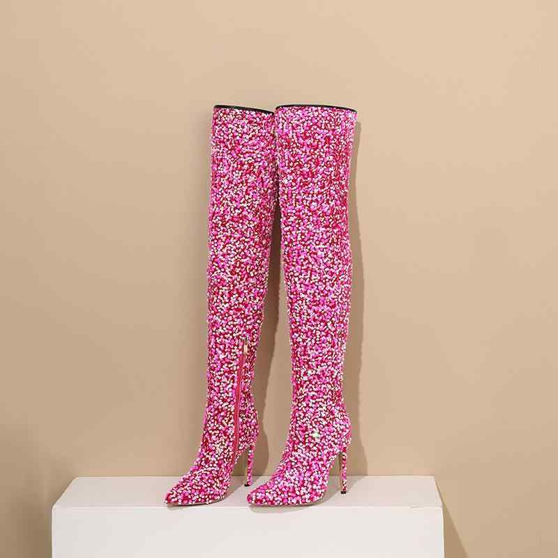 ブーツ レディース ポインテッドトゥ クラック メタリック スネーク柄 ニーハイ丈 ピンヒール ハイ・・・