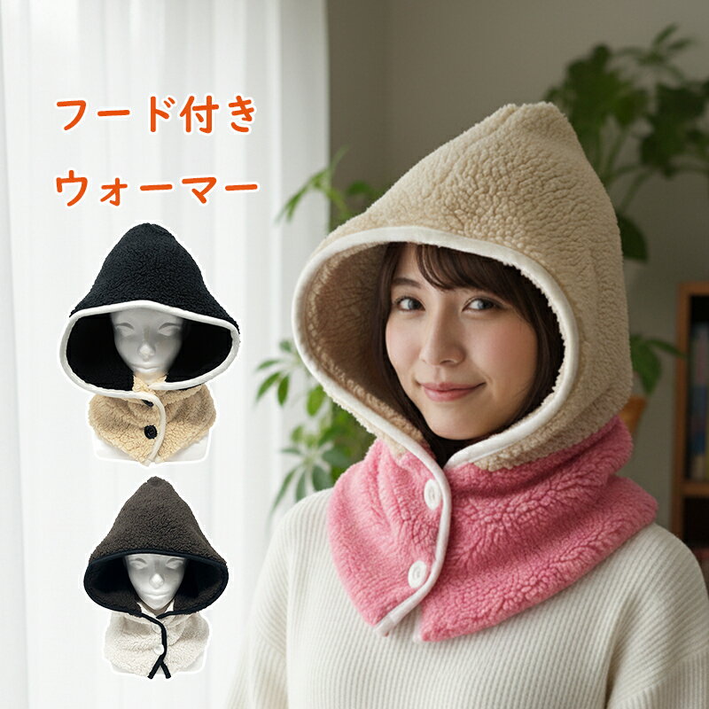 フード付きウォーマー | ボア ネックウォーマー 防寒 あったか 温かい 暖かい 婦人 レディース ・・・