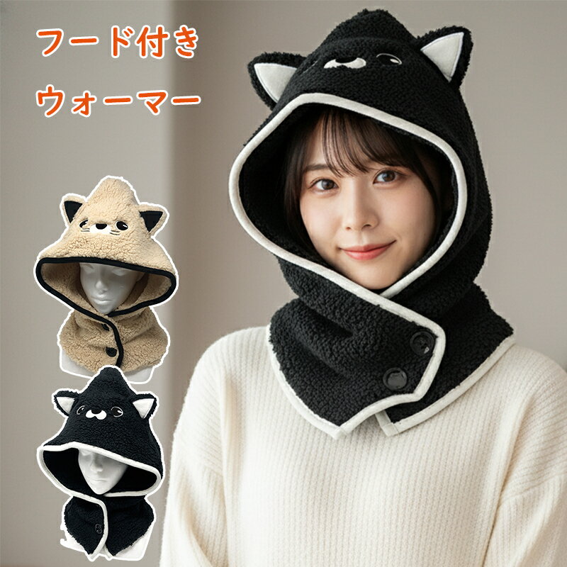 フードウォーマー 猫タイプボア ネックウォーマー 防寒 あったか 婦人 もこもこ ぽかぽか かわいい・・・
