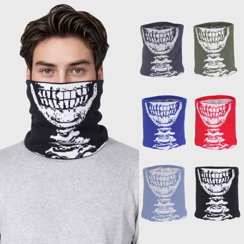 ネックウォーマー メンズ 裏起毛 厚手 スヌード フェイスマスク ハロウィン ドクロ スカル柄 防寒・・・