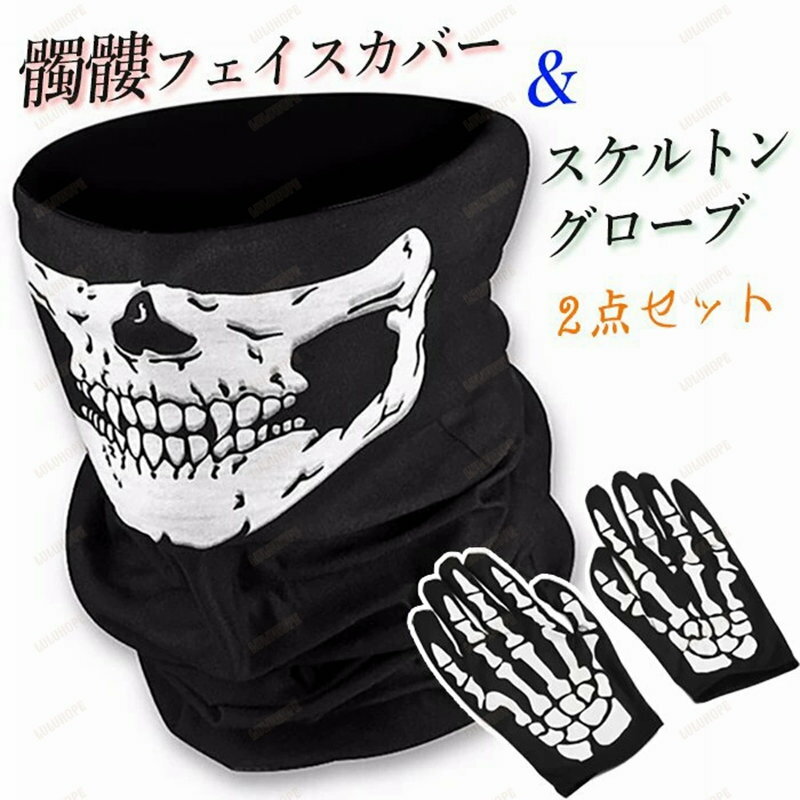 ハロウィン スカル フェイスカバー 手袋 スケルトン バイク 自転車用 ネックウォーマー スカルフェ・・・