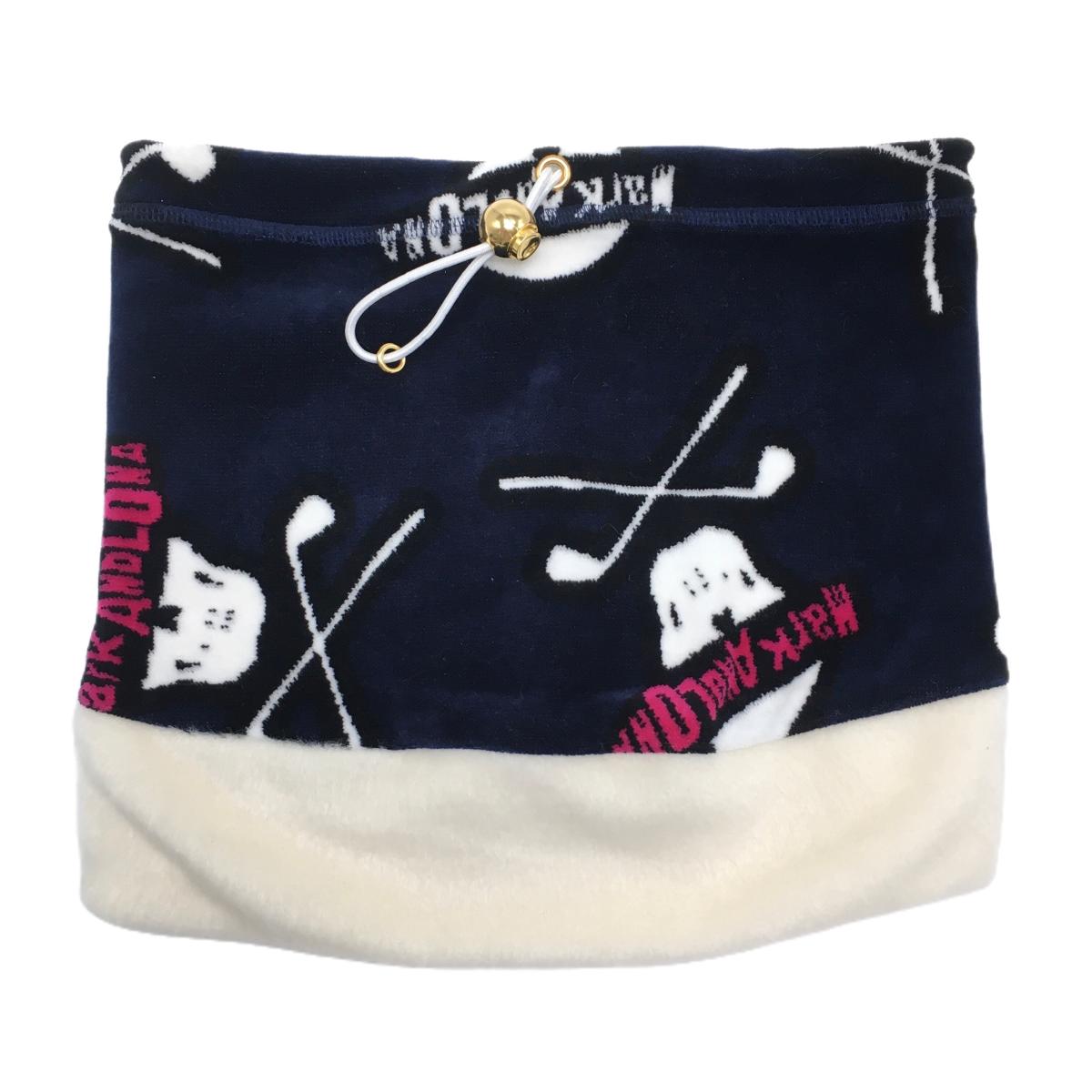 【超美品】マークアンドロナ ネックウォーマー ネイビー×白 スカル柄 起毛素材 ドローコード FRE・・・
