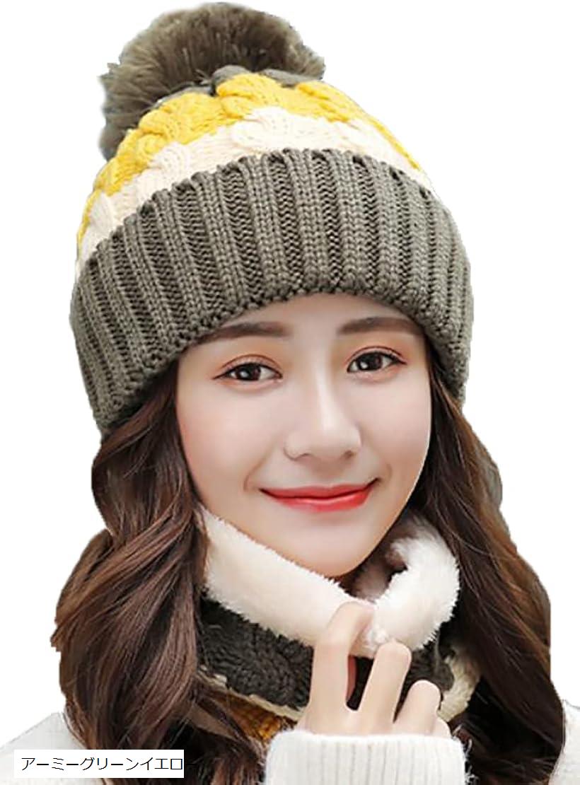 ネックウォーマー ニット帽 レディース セット 防寒 スキー スノボ 秋 冬 アーミーグリーンイエロ・・・