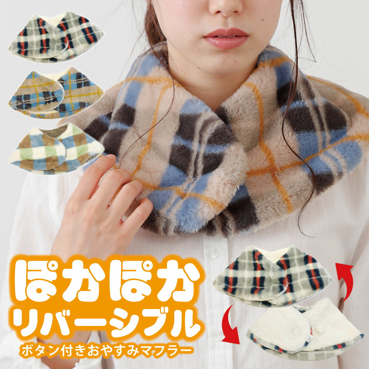 【エントリーでポイント5倍】おやすみ マフラー チェック柄×無地 温活 冷え防止 睡眠 ネックウォー・・・