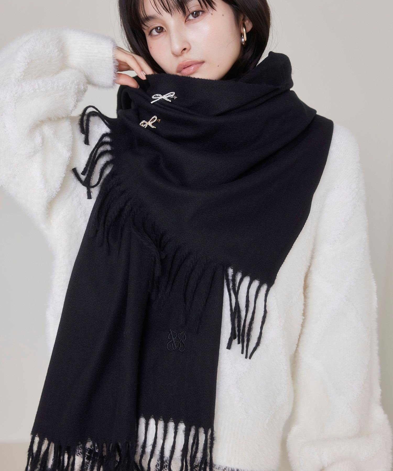 VIS なめらかタッチ刺繍入りストール ビス ファッション雑貨 マフラー・ストール・ネックウォーマー・・・