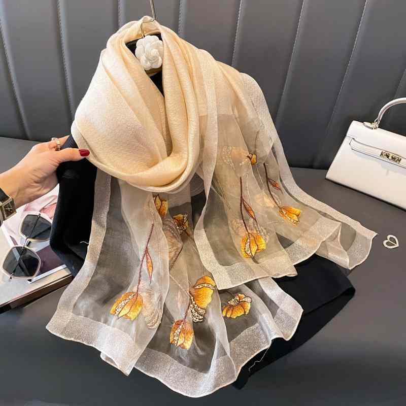 ショール レディース 秋冬 暖か シルク混紡 刺繍 ビーズ 高級感 ストール スカーフ ネックウォー・・・
