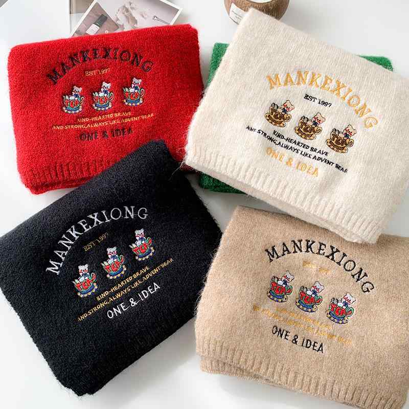 マフラー レディース 秋冬 韓国 学生 カップル 保温 ネックウォーマー メンズ ニット 刺繍 オー・・・