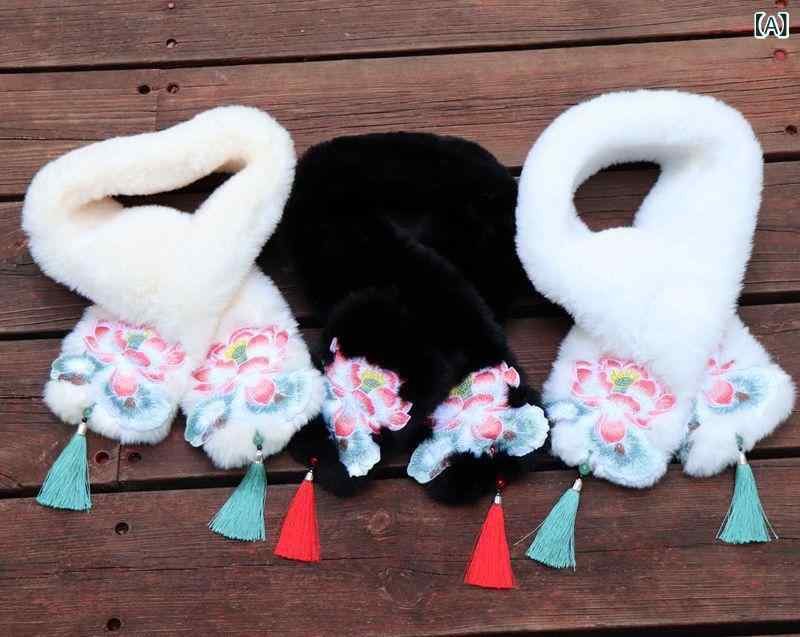 マフラー レディース 民族風 刺繡 蓮 花柄 かわいい ストール ネックウォーマー 女性用 秋冬 防・・・