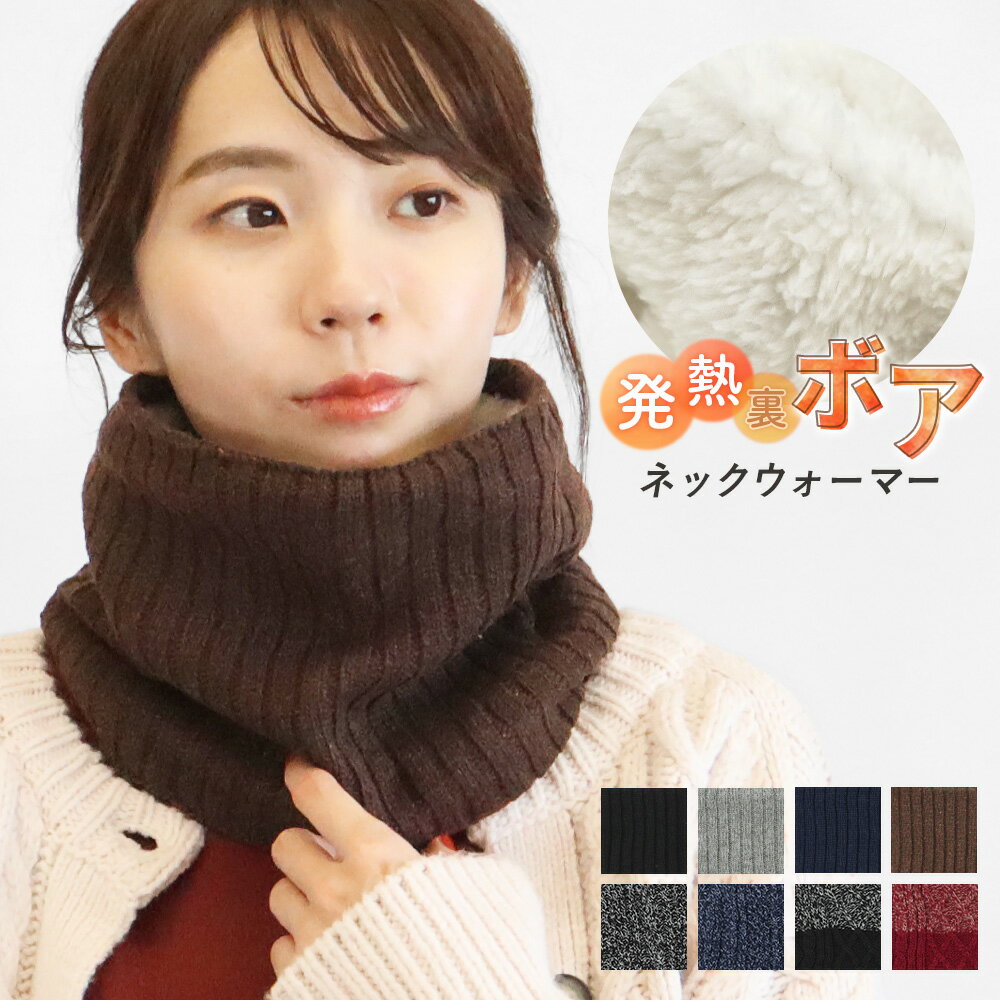 発熱裏ボア ネックウォーマー ニット ボア 発熱加工 あったか スヌード ネックカバー 冬用 防寒 ・・・