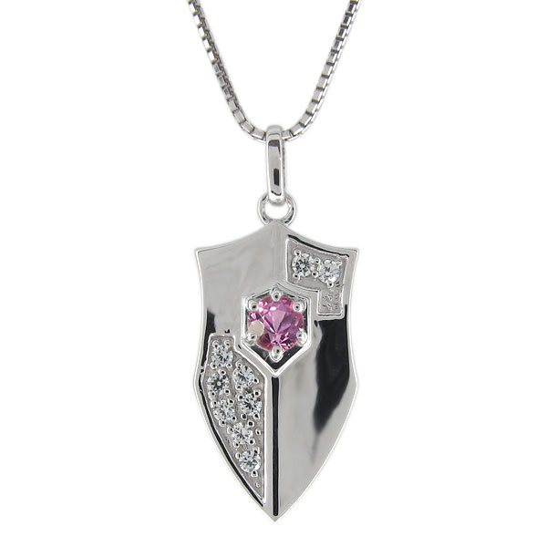 メンズ・ネックレス・9月誕生石・ピンクサファイア・プラチナ・盾・ペンダント 父の日 2024