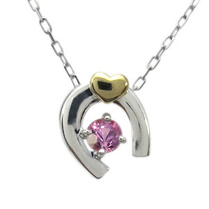 馬蹄・コンビ・ピンクサファイア・ネックレス・ホースシュー・ハート