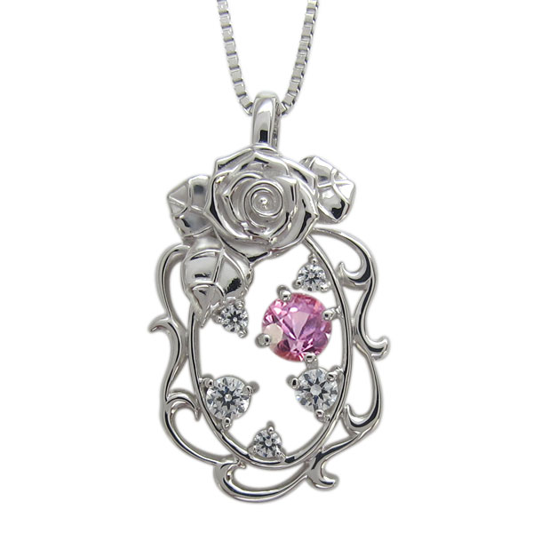 プラチナ ローズネックレス 唐草 ピンクサファイアペンダント