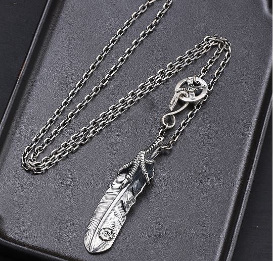 フェザー シルバー ネックレス (チェーン付き) 羽根 ペンダント シルバー925 メンズ 羽 ネイ・・・