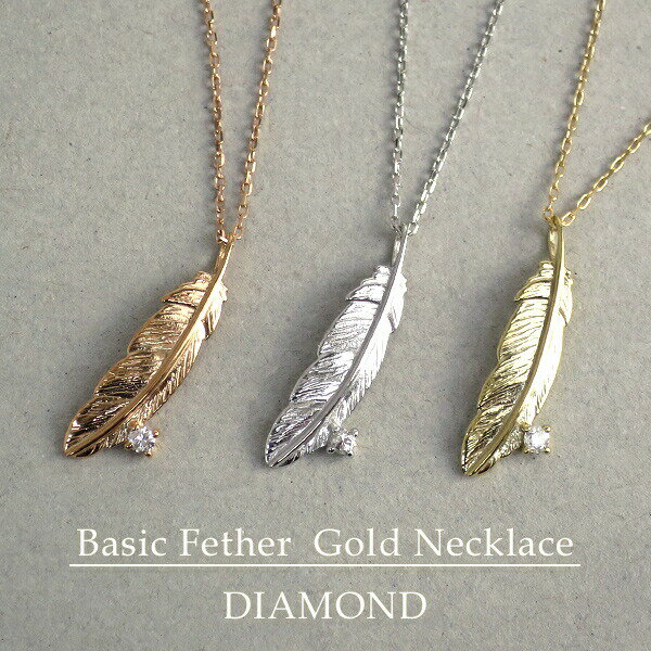 フェザー 羽 ダイヤモンド ネックレス 18金 k18 イエローゴールド ピンクゴールド ホワイトゴ・・・