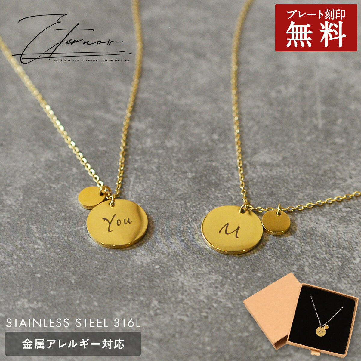 14K ゴールデンプレート イニシャル ネックレス 金属アレルギー対応 刻印無料 オールシーズンジュ・・・