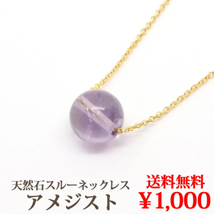 アメジスト 一粒 ネックレス (8mm) アズキチェーン 天然石 スルーネックレス 大粒 アメシスト・・・