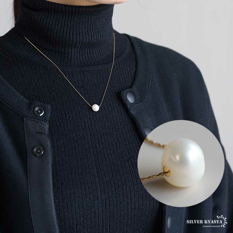 ステンレス 一粒パールネックレス ゴールド 18KGP 天然淡水パール 細身ネックレス 真珠 シンプ・・・