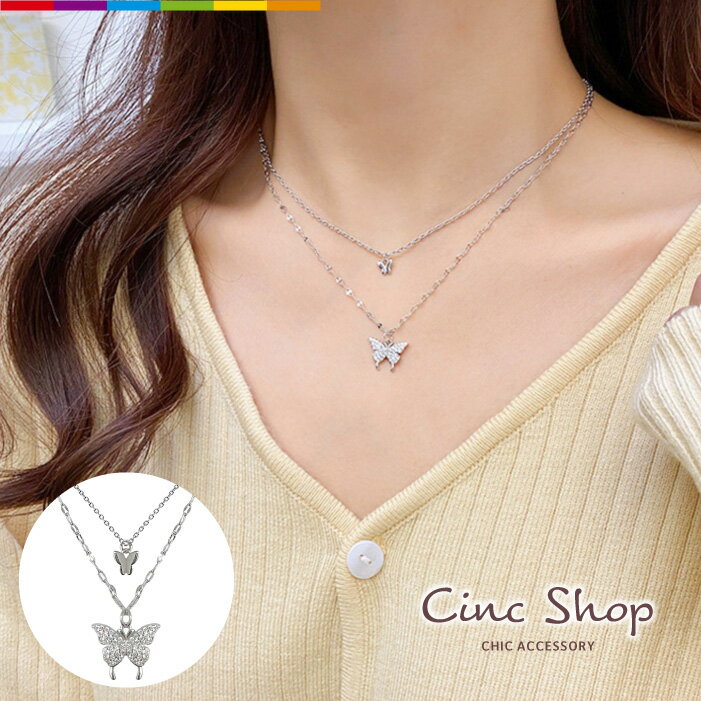 ネックレス レディース チョーカー バタフライ レイヤード 2連 シルバー おしゃれ 韓国 かわいい・・・