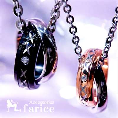 ペアネックレス 刻印 ステンレス キュービックジルコニアミニ リング ビッグ2個 ペンダントトップ ・・・