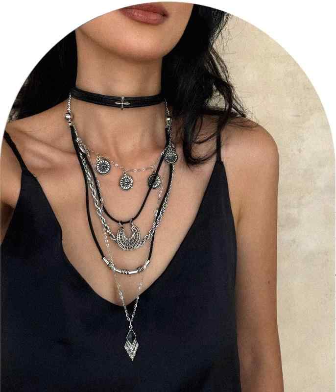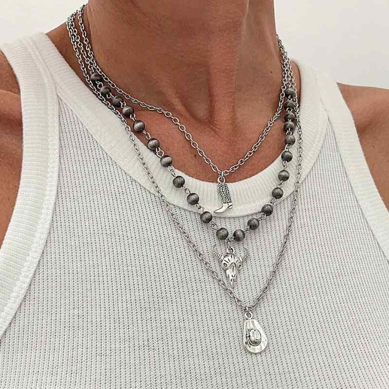 アクセサリー レディース 精巧 不規則 レトロ ネックレス エスニック 3ピース シルバートーン ヴ・・・