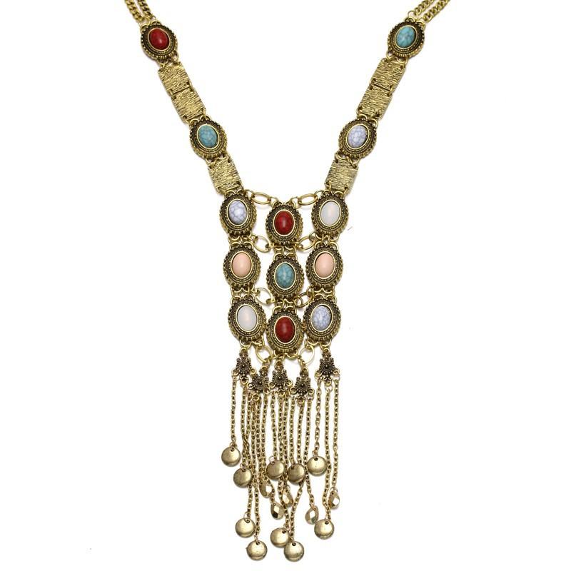 ネックレス レディース ボヘミアン風 エスニック フリンジ タッセル ドロップ型 幾何学模様 ロング・・・