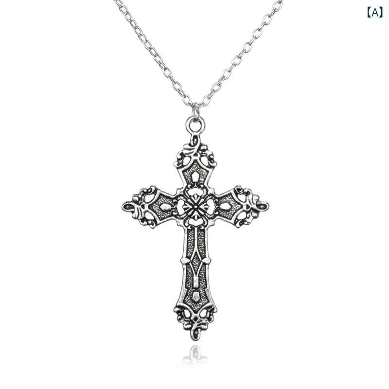 ネックレス 合金製 チェーン 欧米風 バロック クロス ペンダント 個性的 レトロ ヴィンテージ ボ・・・