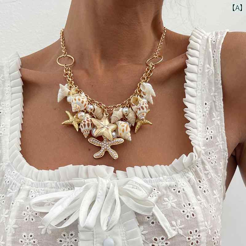 アクセサリー レディース エスニック ボヘミアン 精巧 ビーチ 夏 シェル 合金 ネックレス ヒトデ・・・