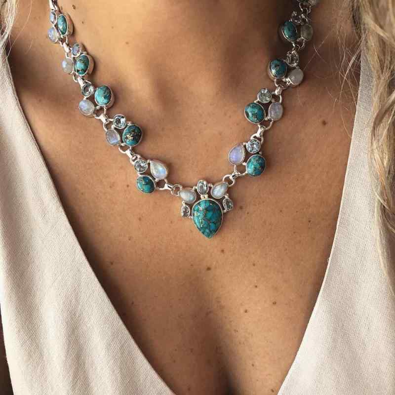 ネックレス ホワイトターコイズ ボヘミアン風 フラワーモチーフ ファッション 個性的 合金製 ボック・・・