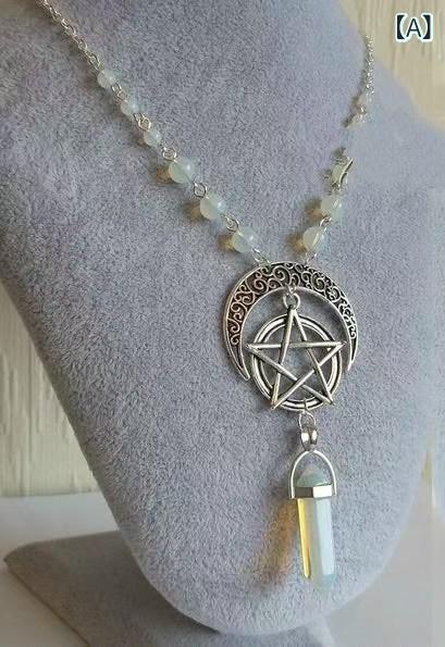 ネックレス レディース 電気メッキ加工 合金製 ゴシック 五芒星 月 オパール 神秘的 魔術 異教徒・・・