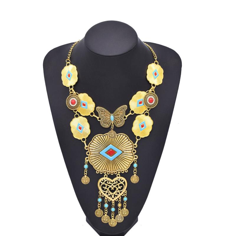 アクセサリー アメリカ レトロ コイン タッセル ネックレス 多層 ボヘミアン 漢服 蝶 桃 ハート・・・