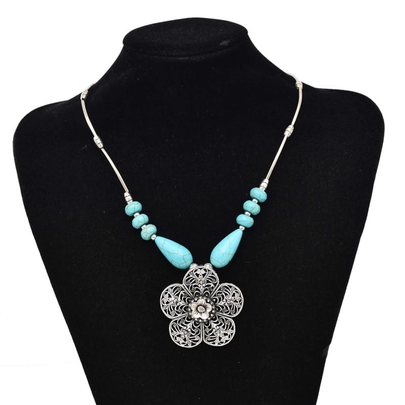ネックレス レトロ エキゾチック ボヘミアン エスニック ファッション ターコイズ 梅の花 ペンダン・・・