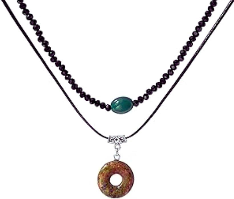 アジアン ネックレス アクセサリー ヴィンテージ ボヘミアン調 2連レイヤード ビーズ&革紐 アジア・・・
