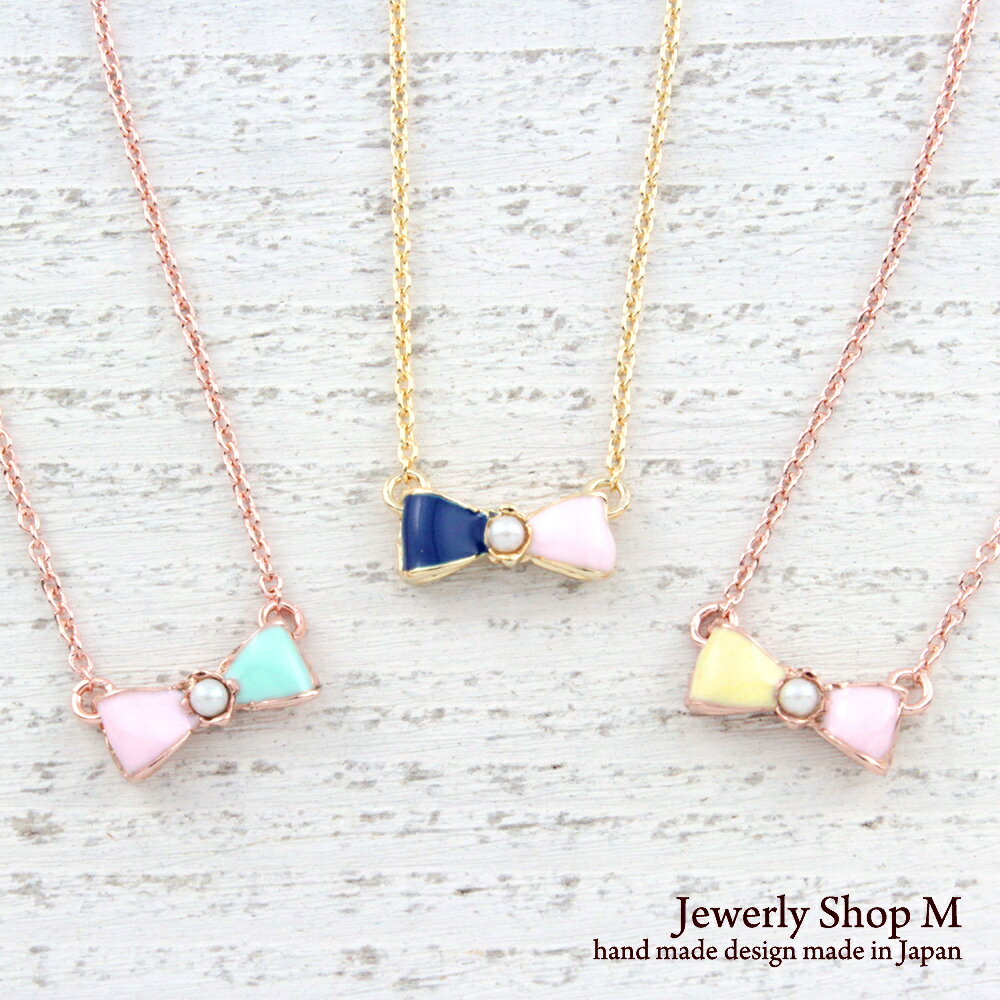 ネックレス レディース 女性用 リボン エナメル ジュエリー アクセサリー シンプル おしゃれ かわ・・・
