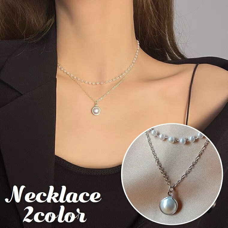 ネックレス レディース レイヤード 2連 ストーン パール シンプル お呼ばれ オケージョン 激安 ・・・