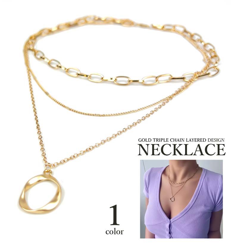 ツイストリングトップ 3連 ゴールドチェーン チョーカー ネックレス ペンダント プチプラ アクセサ・・・