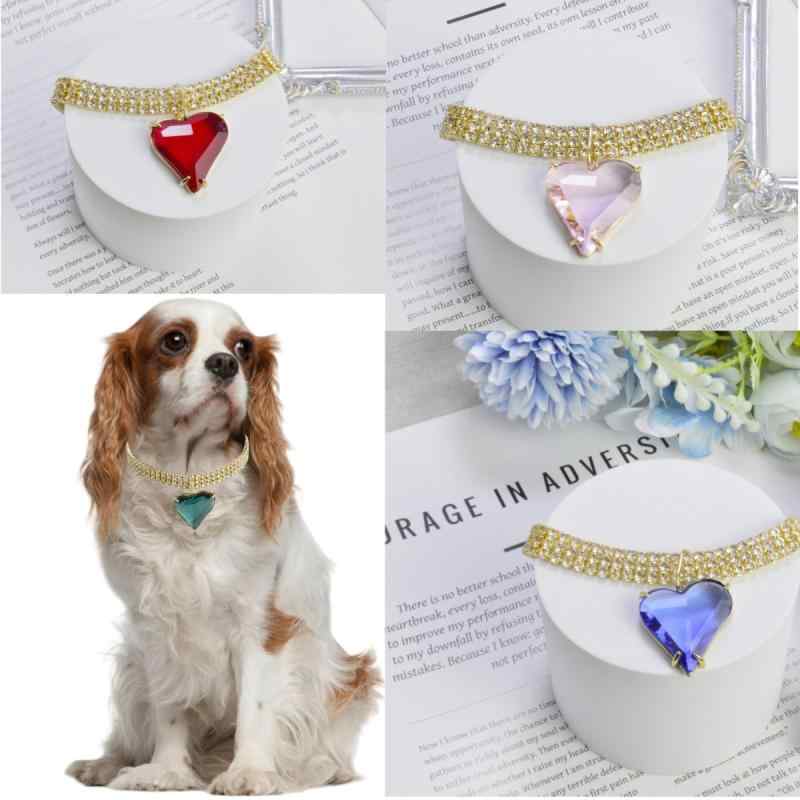 ペット用首輪 犬 猫 兼用 キラキラ クリスタル ラインストーン 3連 ゴールド アシンメトリー ハ・・・