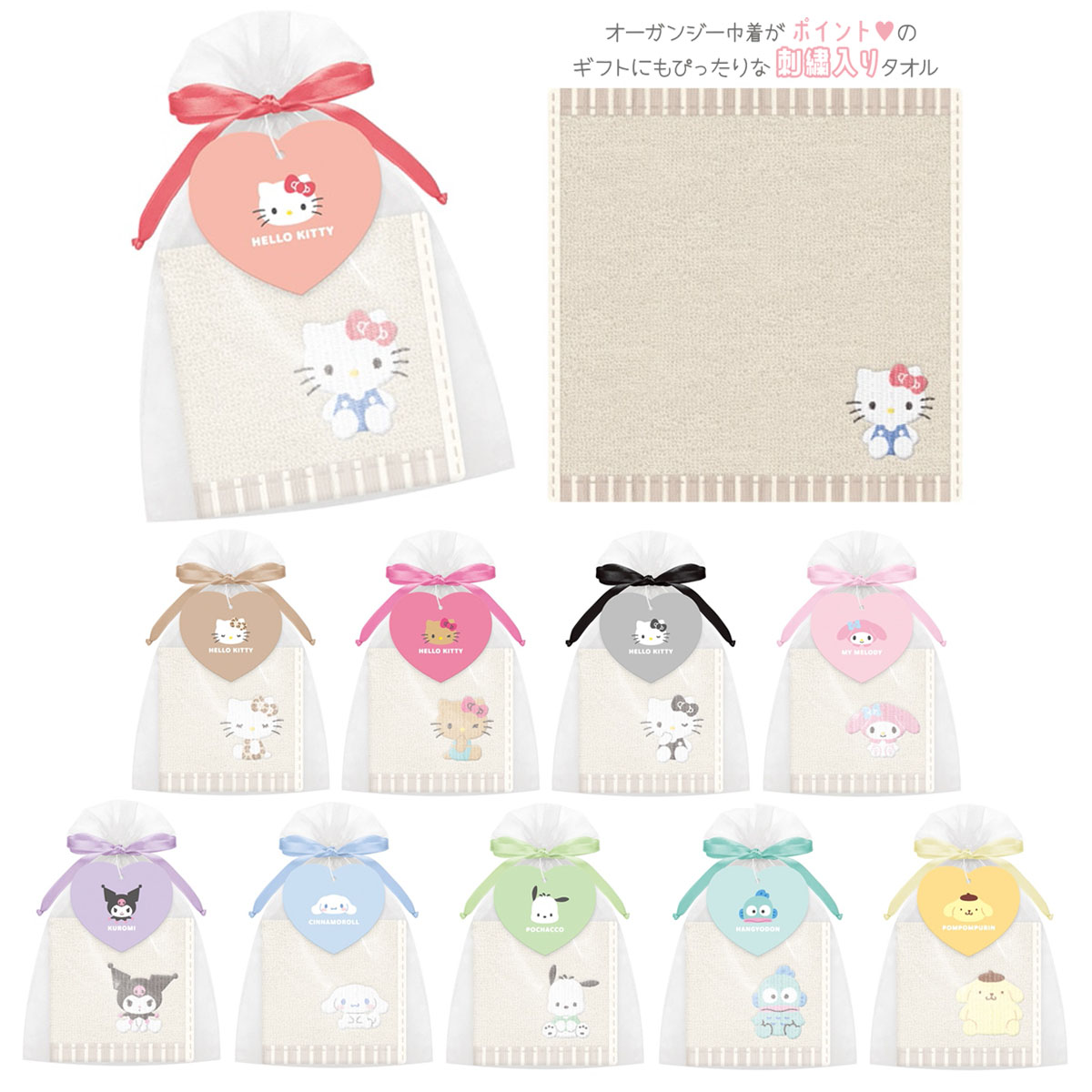 巾着入りタオル サンリオキャラクターズ 【 刺繍入りタオル ハンドタオル タオルハンカチ オーガンジ・・・