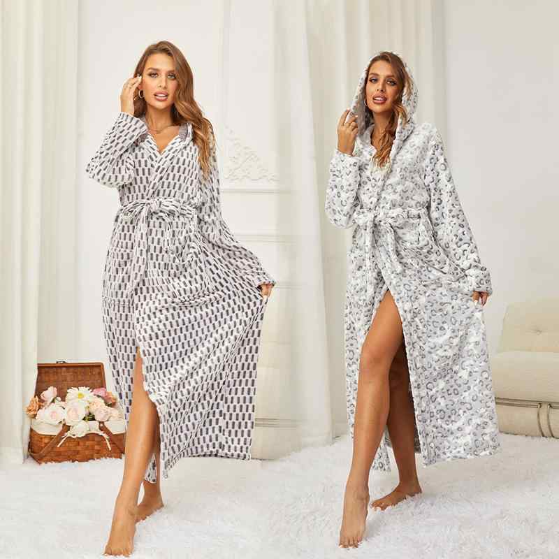 バスローブ 男女兼用 ペア フランネル パジャマ ルームウェア 保温 暖かい 秋冬 ロング丈 フード・・・