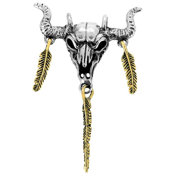 ネイティブ ペンダントトップ(チェーンなし) バッファロー スカル フェザー ネックレス ペンダント・・・
